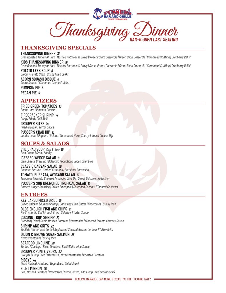Celebrate Thanksgiving with a festive feast at Pusser’s!