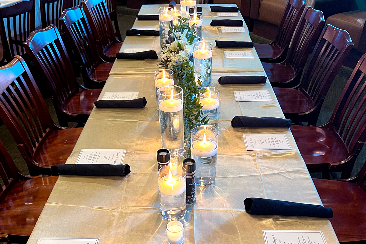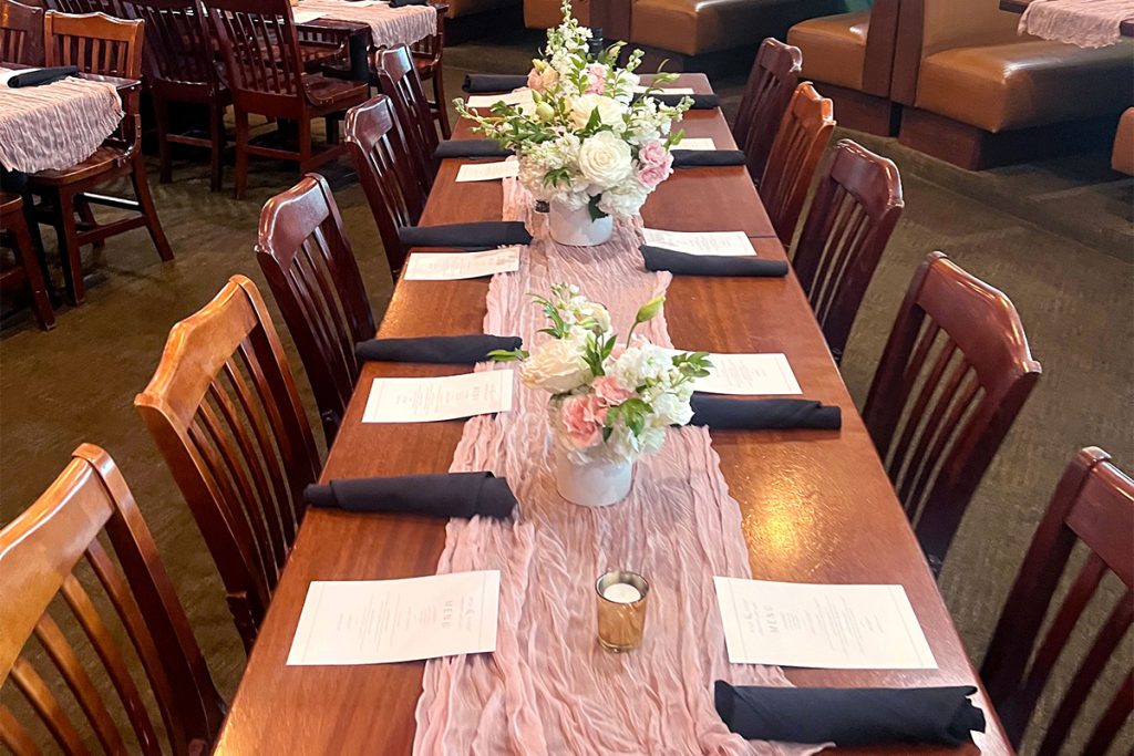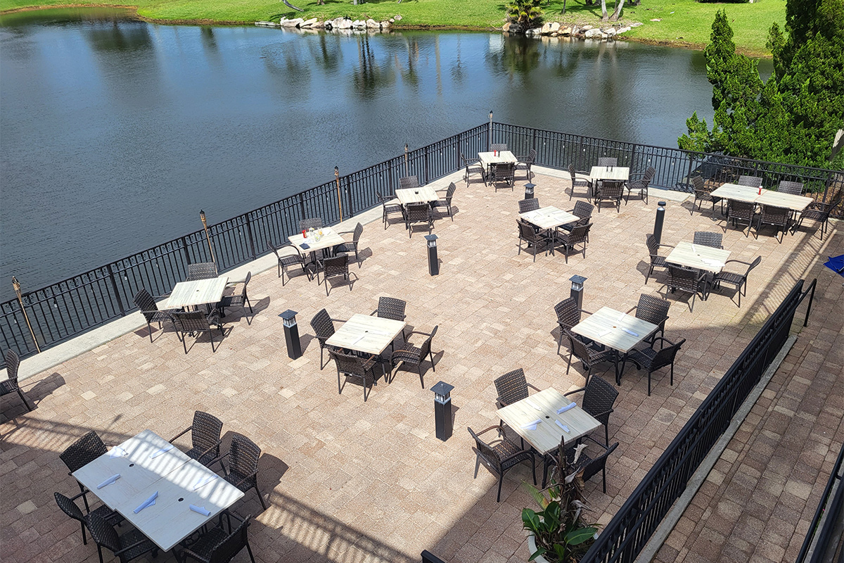 Enjoy a sit-down lunch or dinner on our lakefront patio, with every table offering a front-row view of the water. The space accommodates up to 60 guests, making it perfect for any private gathering or special occasion.