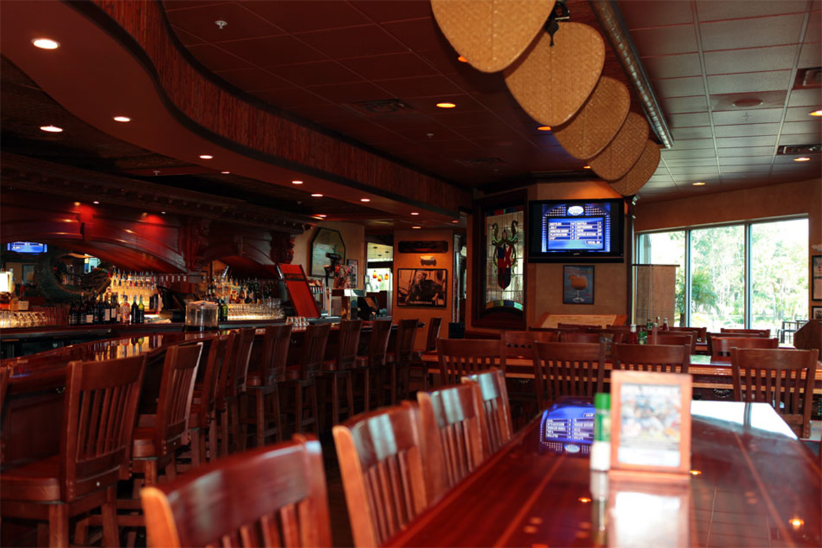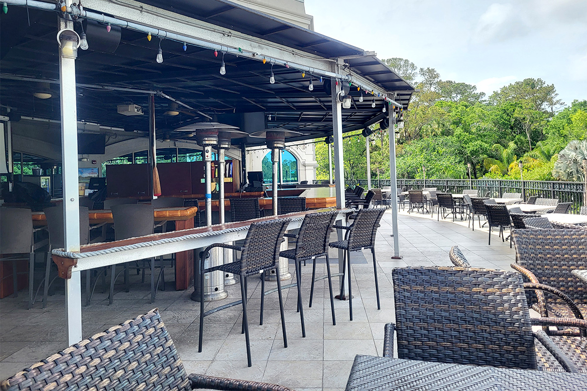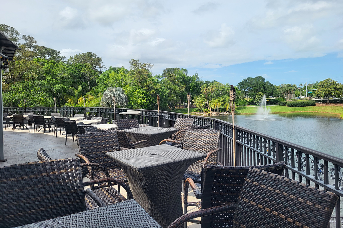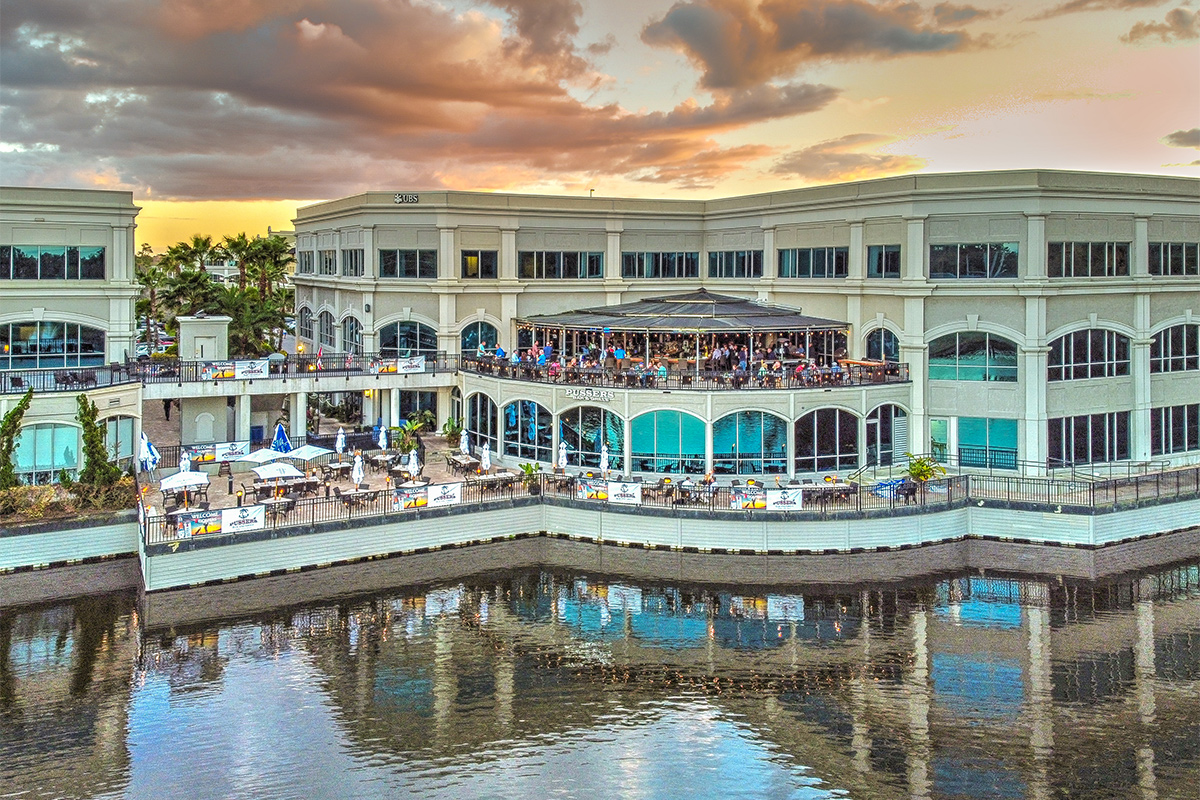 Enjoy the panoramic view overlooking the beautifully landscaped Shoppes of Veranda lakefront at the entrance to Sawgrass Resort, home of the PGA Player’s Club Golf Tournament. This space is equipped with a full service, multi-station, wrap-around bar and several 55” televisions. The venue includes plenty of high-top and regular seating options (including standing room) a staging area for entertainment or bands, and even a jumbo-sized HD projector with 90” screen—this is the ultimate venue for larger clubs, groups or gatherings.