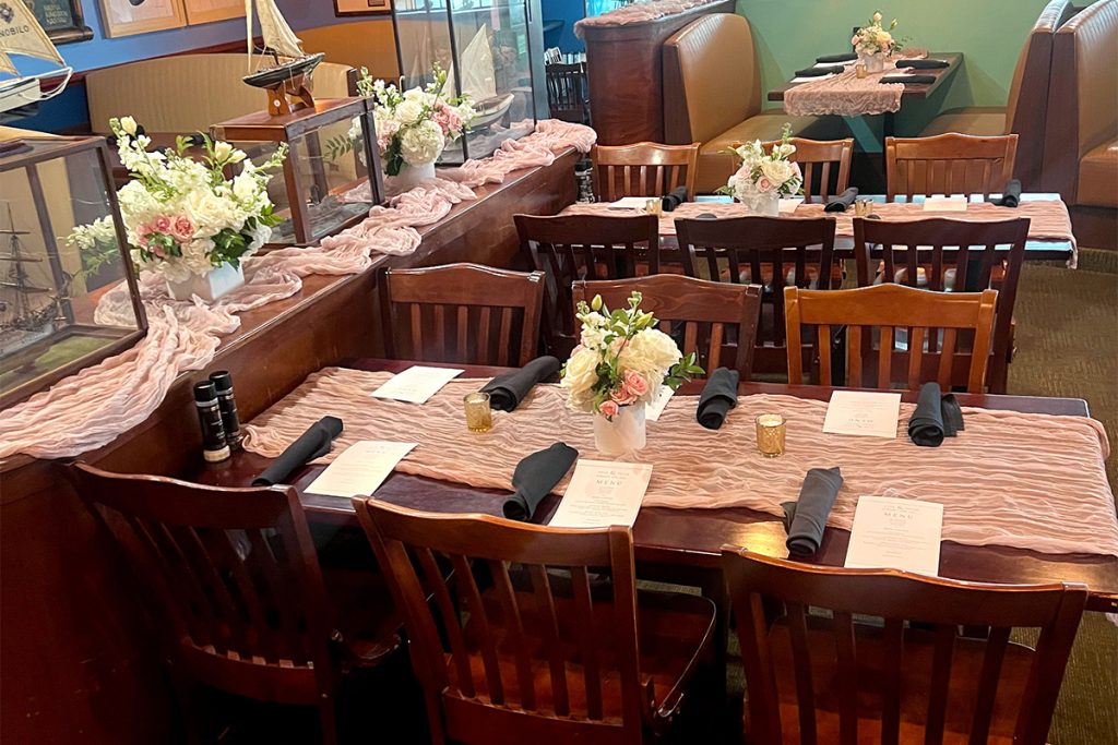 Sit back & relax as you enjoy a wrap around window view of the lakefront, right from your table. The interior of the restaurant’s lower level is adorned with sailing and royal navy memorabilia, making this a truly memorable dining experience.